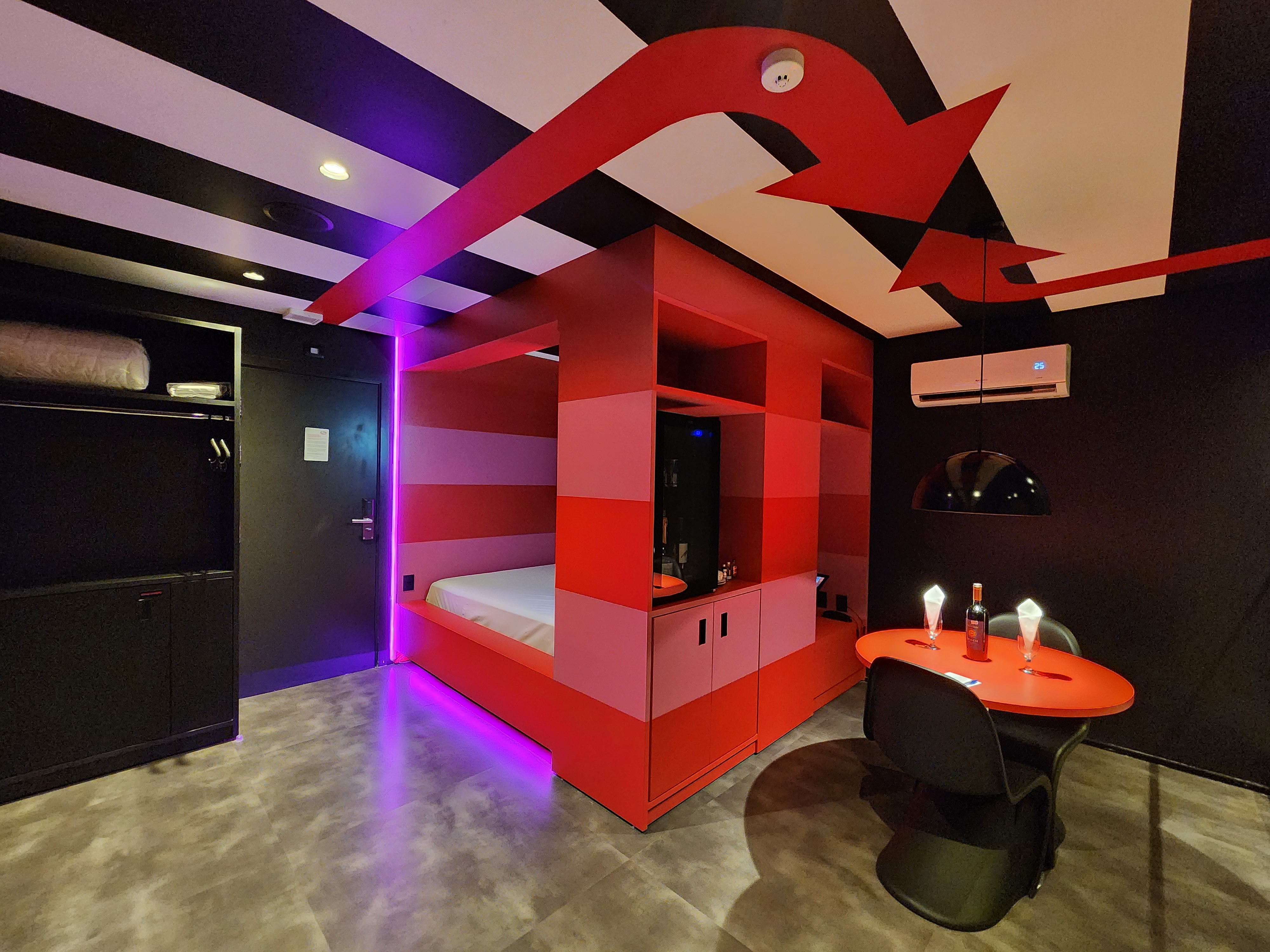 A Suíte Cubo é a escolha perfeita para quem busca uma estadia vibrante e cheia de energia. Com uma cama king size super confortável e uma decoração artística exclusiva, esta suíte promete momentos inesquecíveis. Reserve agora e crie memórias divertidas!